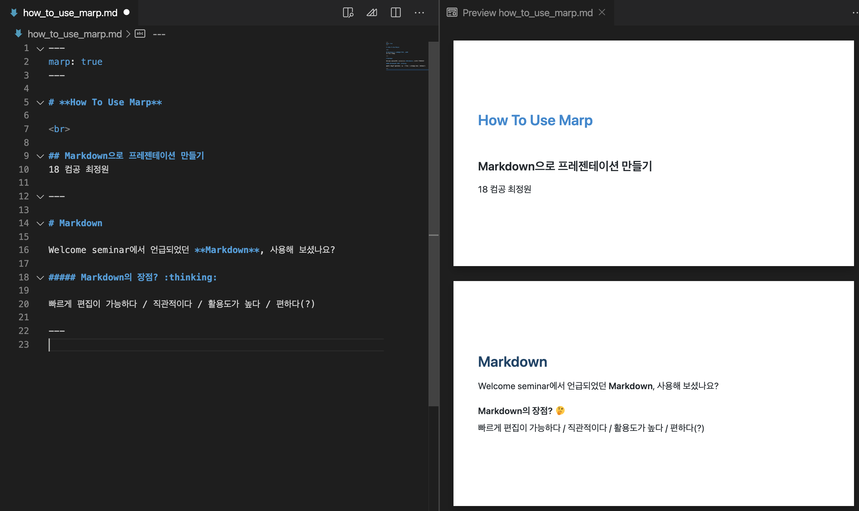 - Marp 문법 익히기